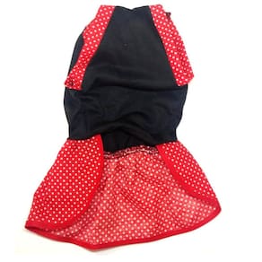 Vestido De Verão Para Cachorro Preto Com Laço Da Minnie - G - Ideal para o Verão; - Corpo, confeccionado em malha PV na cor preta. - Saia, confeccionada em tricoline na estampa vermelho poá; - Acabamento em viés; - Laço confeccionado na fita com estampa da Minnie; - Modelo prático e leve para o seu pet; Tabela de medidas: G - 37 cm de comprimento, 50 cm de circunferência Abdominal, 30 cm de circunferência de Pescoço. Cor: preta com saia vermelha O tecido é leve e confortável e não aquece o cão, pode ser em dias de verão, porém caso esteja muito sol não recomendamos nenhuma vestimenta na sua cachorrinha. Também recomendamos a utilização desse vestido nos dias de primavera ou início de inverno. Marca: Não Informado