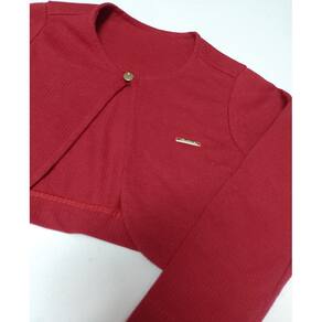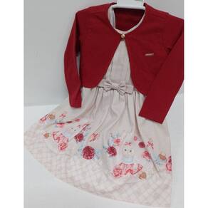 - Vestido em tecido duplo, super macio leve e confortável. Detalhes de prega vertical na parte superior frontal. Laço aplicado na cintura. Na saia estampa maravilhosa que dá um charme todo especial a peça. Abertura por botões de pressão nas costas. Uma peça encantadora para sua princesa! - Bolero em tricotil, muito macio e confortável. Na parte superior frontal com plaquinha personalizada da marca. Ainda conta com bordado e lantejoulas aplicadas na barra, que dão um charme ainda mais especial a peça. Abertura por botão perolado.
