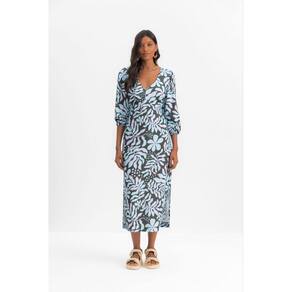 Vestido Feminino Midi Floral Essendi Verde Escuro - Verde - XG