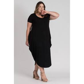 Vestido feminino plus size elaborado em visco. Possui boa elasticidade, peça leve, macia, com bolsos nas laterais, barra em formato oval e decote "V". Peça cheia de estilo e conforto. Monte look arrasadores estando bem vestida!
