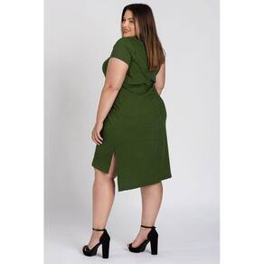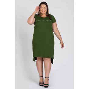 Vestido feminino plus size elaborado em tecido canelado. Possui boa elasticidade, leve, macio. Modelo que proporciona conforto alinhado ao charme de uma básico nada básico. Possui estampa na parte da frente, abertura nas laterais e a parte de trás mais alongada que a da frente estilo mulet.
