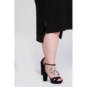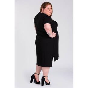 Vestido feminino plus size elaborado em tecido canelado. Possui boa elasticidade, leve, macio. Modelo que proporciona conforto alinhado ao charme de uma básico nada básico. Possui estampa na parte da frente, abertura nas laterais e a parte de trás mais alongada que a da frente estilo mulet.
