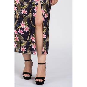 Vestido Feminino Plus Size Longo Ciganinha Estampado Malha Confort Detalhe Cintura Fenda Frontal