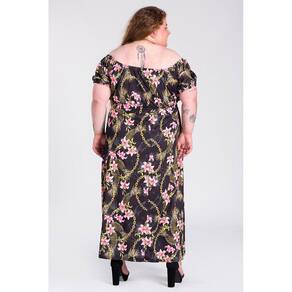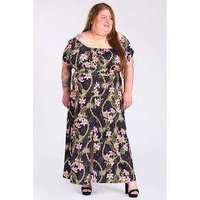Vestido Feminino Plus Size Longo Ciganinha Estampado Malha Confort Detalhe Cintura Fenda Frontal