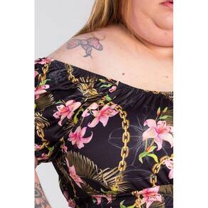 Vestido feminino plus size elaborado em malha confort. Peça com boa elasticidade, leve, macia ideal para os dias de verão. Possui estampas diferenciadas, detalhe em costura que na parte do busto e na parte da frente abaixo, que finaliza com abertura/fenda proporscionando aquele diferencial a peça e ao seu look.