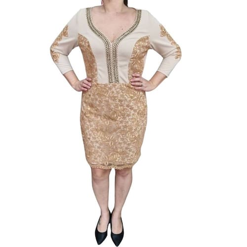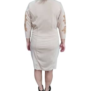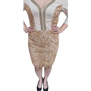 Vestido Festa CKM Pedrarias e Bordados Bege.