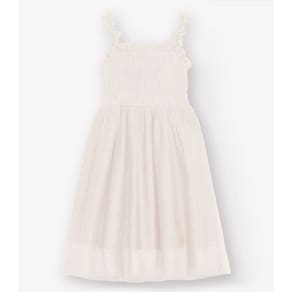 As alças finas com babadinhos trazem um toque romântico e elegante, enquanto a saia com caimento leve proporciona movimento gracioso.