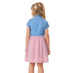 O Vestido Infantil Denim & Tule Rosa Trick Nick une a durabilidade e o estilo do denim à leveza e delicadeza do tule. O corpete é confeccionado em denim macio 100% algodão, com gola clássica, mangas curtas e abertura frontal por botões de pressão, além de patch “N” com acabamento metalizado para um toque fashion. A cintura traz acabamento raw edge, que dá um detalhe moderno à peça. A saia em tule rosa (100% poliéster), com cós franzido e forro em tecido leve, oferece caimento fluido e movimento encantador. Perfeito para festas, passeios ou qualquer ocasião em que as pequenas queiram brilhar com conforto e charme!