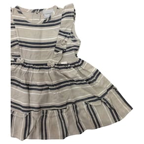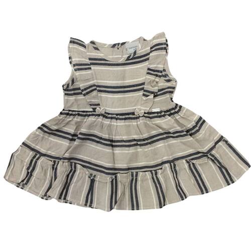 Vestido super levinho, cor bege com listras em azul marinho e branco, 98% viscose com % linho. Um luxo. Noruega é tudo de bom!! Perfeito para deixar sua pequena ainda mais linda e arrasar em qualquer ocasião. Coleção inspirada em cores e materiais do Brasil e Europa.Tudo pensado e desenvolvido com muito carinho.