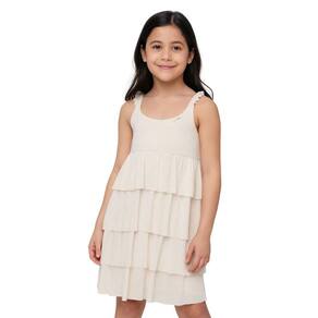 Vestido Infantil Feminino Branco Camadas com Alças Ano Novo - Branco - 4