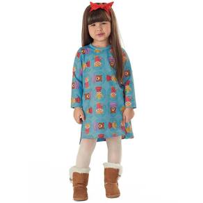 Vestido Infantil Inverno Manga Longa em Malha Flanelada Sublimático Azul Up Baby Ref. 42630