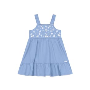 Vestido infantil menina confeccionado em malha, conta com uma estampa floral em puff com glitter, que traz um toque especial e delicado. Com modelagem regata e gola redonda, este modelo proporciona conforto e liberdade de movimento. As pregas na cintura garantem um efeito rodado, perfeito para as pequenas que adoram girar e brincar. Invista!