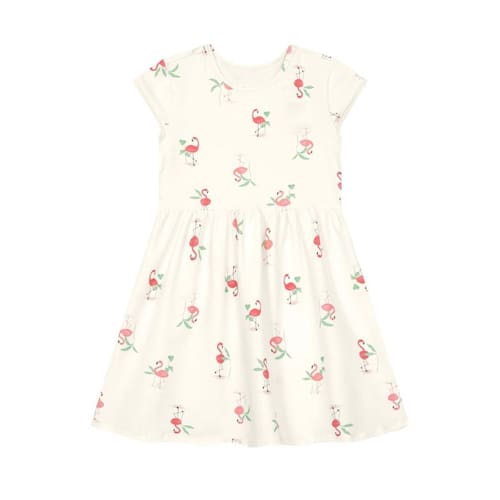 Delicado e cheio de estilo, o vestido infantil da Brandili traz todo o charme que as meninas adoram. Produzido em cotton macio, é leve e confortável para acompanhar cada momento do dia. A estampa colorida de flamingos adiciona um toque divertido ao visual, enquanto o recorte na cintura com pregas garante movimento e um caimento rodado encantador. Com mangas curtas e gola redonda, é fresquinho e fácil de combinar com sandálias ou sapatilhas. Um look versátil para brincar, passear e viver ocasiões especiais com alegria.
