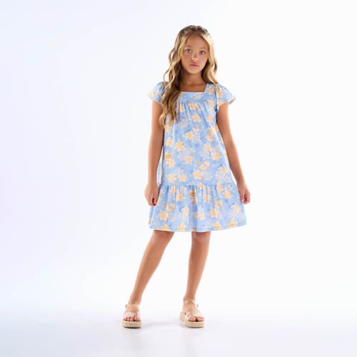 Muito charme e fofura para sua pequena fashionista! Vestido meia malha com estampa digital hortênsia de flores, mangas curtas e recorte no busco para deixar a peça com mais movimento. Encante com alegria em cada detalhe!