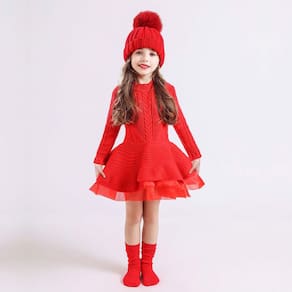O vestido de choche em lã tricô é a escolha perfeita para as festas mais especiais. Com suas mangas longas, a peça oferece elegância e conforto para as pequenas princesas aproveitarem cada momento com muita graça.