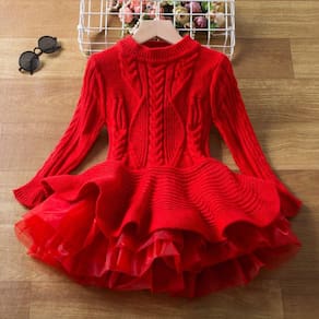 Vestido Infantil Menina Choche Lã Trico Festas Manga Longa