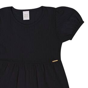 Vestidos são os favoritos das meninas para usar durante um passeio especial! Invista no vestido em malha corrente na cor preto, fresquinho e leve para sua pequena movimentar-se cheia de estilo com manga bufante leve. Uma fofura!