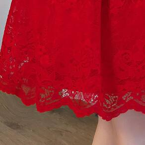 A cor vibrante e a delicada renda proporcionam um visual encantador, ideal para ocasiões especiais. Além disso, o design sofisticado do vestido permite que as crianças se sintam como verdadeiras princesas. A combinação de detalhes como a renda e a cor vermelha cria um visual deslumbrante que certamente irá encantar a todos.