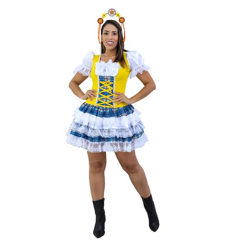 Vestido Junino Caipira Rodado Luxo Adulto Joaquina Festa São João Arraia Quadrilha Festa Junina Quermesse - Sortido - GG