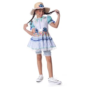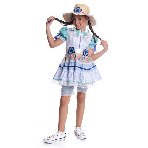 Seja a estrela da festa junina com o encantador Vestido Junino Infantil Caipira Flor azul! Este traje deslumbrante é perfeito para você brilhar e se destacar nas comemorações juninas.