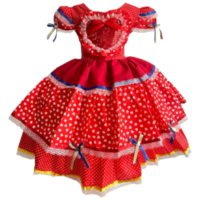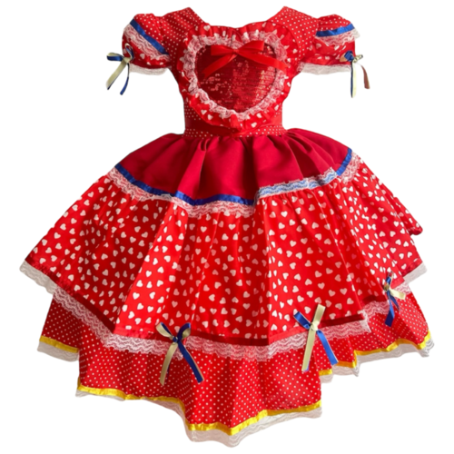 Confeccionado com materiais de qualidade, o vestido possui cores vivas, babados, laços e detalhes tradicionais que tornam a peça ainda mais encantadora. Ideal para quadrilhas, festas escolares, arraiais e eventos temáticos.