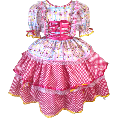 Confeccionado com materiais de qualidade, o vestido possui cores vivas, babados, laços e detalhes tradicionais que tornam a peça ainda mais encantadora. Ideal para quadrilhas, festas escolares, arraiais e eventos temáticos.