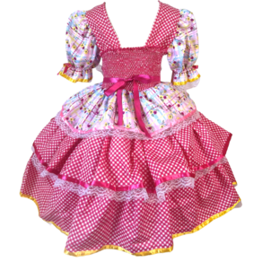 Deixe sua menina linda e pronta para se destacar nas festas juninas com este vestido caipira infantil super charmoso e confortável.
