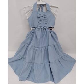 -VESTIDO MALHA DENIM ULTRA CONFORT, SUPER MACIO E CONFORTÁVEL. NA PARTE SUPERIOR DE AMARRAR, DETALHE FRONTAL COM LAÇOS APLICADOS E PLAQUINHA PERSONALIZADA DA MARCA. DETALHE DE RECORTE NOS LADOS. SAIA DRAPEADA EM CAMADAS. COM ELÁSTICO NA CINTURA. SIMPLESMENTE UM ENCANTO.