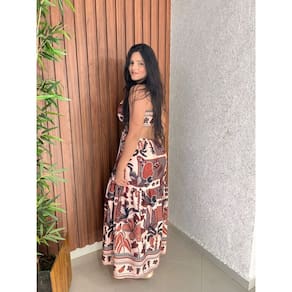 A saia é levemente rodada com camadas, o que confere leveza e movimento ao look. O vestido transmite uma vibe boho e tropical, ideal para dias quentes, passeios ao ar livre ou eventos casuais com um toque de charme. Marca: Não Informado