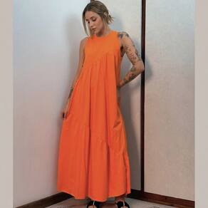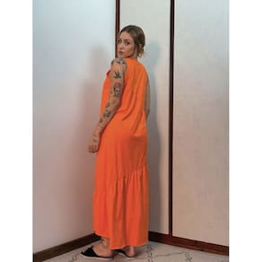 Vestido Longo Feminino malha algodão Aveloz Laranja - Laranja - M