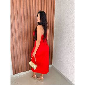 Vestido Longo Frente Unica Detalhe Boho Chique Crisconf - Vermelho - P