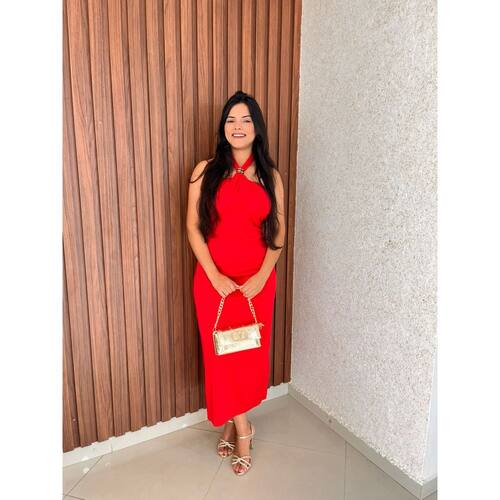 Vestido Longo Frente Unica Detalhe Boho Chique Crisconf - Vermelho - M
