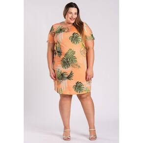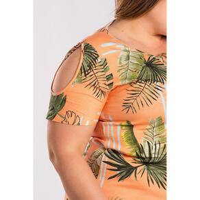 Vestido em malha viscose estampada com flores e folhas, com argola formando um lindo detalhe no decote, ombros vazado. Malha com elastano proporcionado mais conforto e ajustando ao corpo. Modelo ideal para todas as ocasiões.