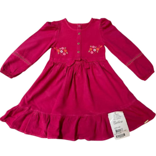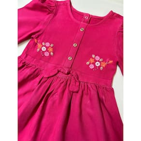 - Vestido em tecido 100% viscose super confortável e macio. A parte superior frontal com detalhe de recorte com botões dourados aplicados e bordado floral super delicado. Manga longa com detalhe de aviamento e punhos com elástico. Lacinho aplicado na cintura. Na barra da saia detalhe de plaquinha personalizada da marca. Nas costas abertura por botões de pressão. Simplesmente um encanto!