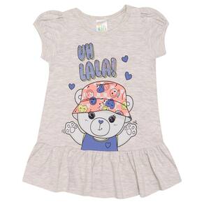 Sua filha vai ficar uma fofura com esse Vestidinho Pulla Bulla, confeccionado em Meia malha na cor Mescla banana com uma estampa super fofa de ursinha com detalhes em glitter, um Look perfeito para qualquer hora, cheio de chame e conforto. Uma peça indispensável no guarda-roupas da sua filha.\n