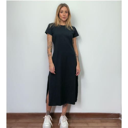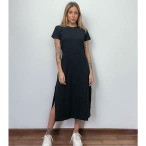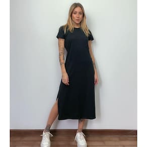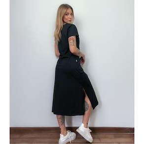 Vestido Mid Camiseta Com Fenda Aveloz Preto