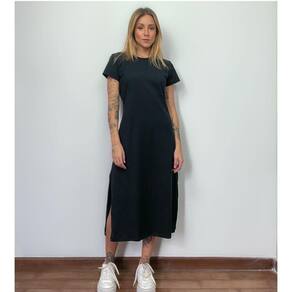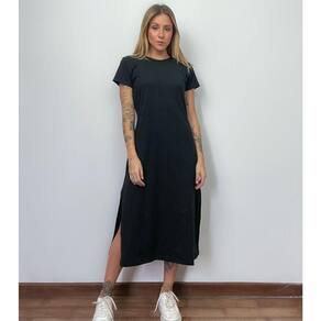 Vestido Mid Camiseta Com Fenda Aveloz Preto
