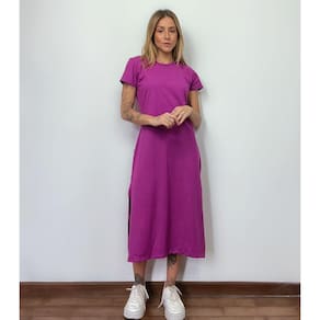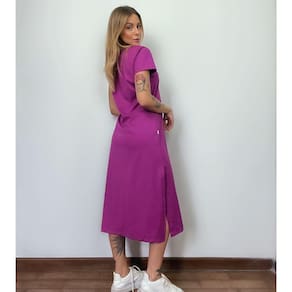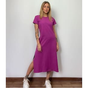 Nome: Vestido Mid Camiseta Com Fenda Aveloz Roxo