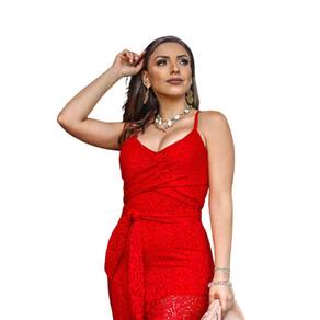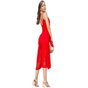 VESTIDO DE ALÇAS REGULAVEIS MIDI TECIDO RENDA MALHA SEM BOJO FORRADO DECOTE V COM DETALHE DE LAÇO VERSATIL QUE PODE SER AMARRADO NA PARTE DA FRENTE OU ATRÁS DO VESTIDO NOS TAMANHOS M VESTE 38\40 G VESTE 42\44