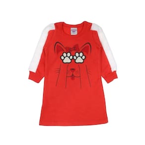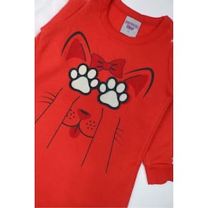 Vestido Moletom Flanelado Vermelho Menina com Pegadas Lindo