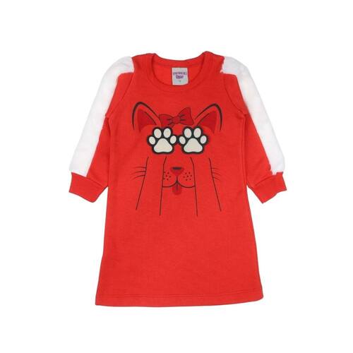 Vestido Moletom Flanelado Vermelho Menina com Pegadas Lindo - Vermelho - 3