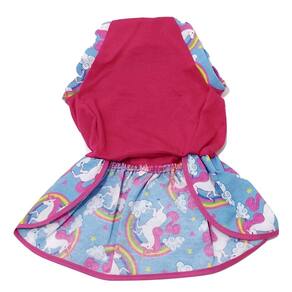 Ideal para o Verão; Corpo, confeccionado em malha PV, na cor rosa; Saia, confeccionada em tricoline de estampa de unicórnio azul; Acabamento em viés rosa; Laço confeccionado no tecido da saia; Tamanho: G Medidas Aproximadas: 37 cm de comprimento/costas, 50 cm de circunferência tórax/peito e 30 cm de circunferência pescoço. Modelo prático e leve para o seu pet; O tecido é leve e confortável e não aquece o cão, pode ser em dias de verão, porém caso esteja muito sol não recomendamos nenhuma vestimenta na sua cachorrinha. Aproveite nossos preços especiais e deixe sua cachorra tão bonita quanto você nessa estação do ano. Também recomendamos a utilização desse vestido nos dias de primavera ou início de inverno.