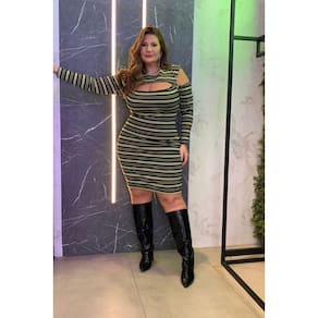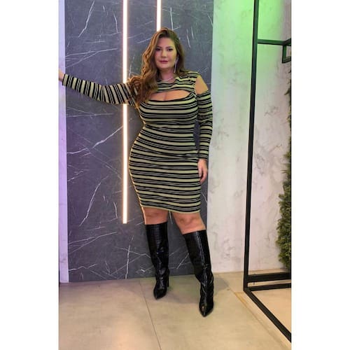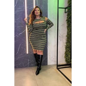 VESTIDO PLUS SIZE LISTRADO MANGA LONGA, é um modelo perfeito para seu dia a dia e super versátil.