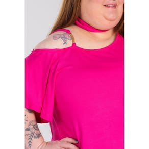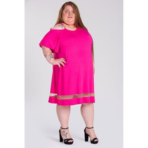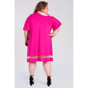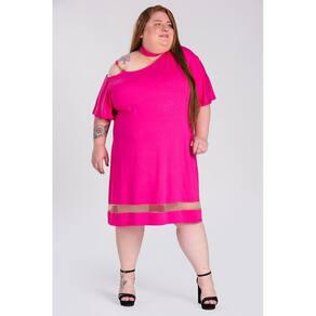 Vestido em malha de viscose com elastano, com detalhe no decote super moderno, um toque de elegacia na alça com uma corrente e barra em tule formando lindos detalhes na peça. Malha com elastano proporcionado mais conforto e ajustando ao corpo. Modelo ideal para todas as ocasiões.