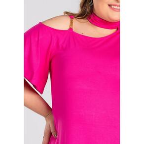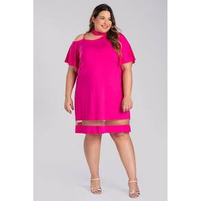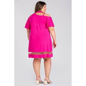Vestido em malha viscose, com detalhe no decote, com corrente de metal no ombro e barra em tule formando lindos detalhes na peça. Malha com elastano proporcionado mais conforto e ajustando ao corpo. Modelo ideal para todas as ocasiões.