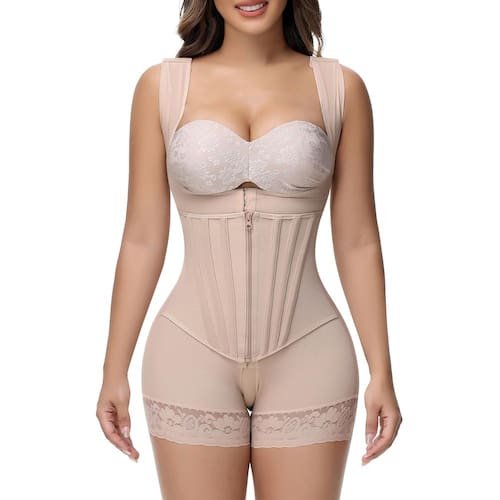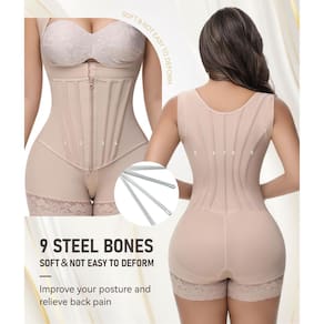 Modelador de corpo inteiro: Detalhes: Alça de ombro ajustável. A faja usa alças ajustáveis para acomodar figuras de tronco longo e curto. Gancho interno, design externo com zíper As cintas modeladoras femininas adotam um design de zíper e usam 3 fileiras de ganchos ajustáveis no interior, para que você possa ajustar livremente o aperto de acordo com o conforto. A virilha do body modelador de cintura é mais fácil e conveniente de usar no banheiro e no banheiro. Pernas de silicone antiderrapantes. O lado interno da renda da perna do modelador de fajas colombianas tem bordas de silicone antiderrapantes para evitar ondulações. A camada externa: 69% nylon, 31% elastano, forro: 82% nylon, 18% elastano, suave para a pele e suave, apenas uma camada de tecido elástico nas nádegas, o design humanizado leva em consideração a compressão e o conforto de diferentes peças. - ?Tripla alta compressão? 3 fileiras de gancho + zíper + 4 barbatanas de aço permitem que sua gordura vá para o lugar certo! Você pode fazer ajustes de 3 níveis de acordo com o estágio, ocasião e nível de conforto, pode ajudar você a reduzir efetivamente o inchaço, ajudar na cura e remodelação. O zíper pode tornar as fajas colombianas moldeadoras invisíveis sob as roupas, não precisa se preocupar - ?Alças de ombro estendidas? Tivemos modelos de diferentes tipos de corpo experimentando e aumentando a largura das alças de ombro e ganchos de ajuste de 3 níveis novamente para aliviar a pressão no ombro - ?Detalhes do M MYODRESS?A virilha tem forro macio, vaso sanitário conveniente sem virilha (24 cm), não precisa se preocupar em ir ao banheiro! As bordas das pernas das cintas modeladoras colombianas são com renda e tiras de silicone antiderrapantes, não precisa se preocupar com ondulações! O quadril é tecido elástico e dá forma ao bumbum bolha - ?Tecido amigo da pele? Você só pode sentir a textura do tecido quando está em suas mãos, a camada externa: 69% nylon, 31% elastano, a malha de alta compressão é tão fina quanto gaze, controle de gordura da barriga enquanto garante respirabilidade, forro: 82% nylon, 18% elastano, suave para a pele e suave, apenas uma camada de tecido elástico nas nádegas, o design humanizado leva em consideração a compressão e o conforto de diferentes peças - ?Satisfaça suas necessidades? Perfeito para qualquer ocasião, pós-parto, estágio 1-3, casamentos, esportes, festas e uso diário. Esta fajas combina perfeitamente com vestidos justos, vestidos de noiva, jeans skinny e todas as outras roupas para mostrar suas curvas