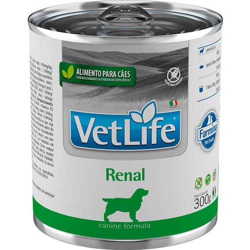 Ração Umida Vet Life Natural Lata Cães Renal 300 g- Rica em vitaminas; - Contém ômega 3 e 6; - Sem adição de cereais; - Indicada para auxiliar cães com doença renal crônica ou aguda; - Não é recomendado o uso para filhotes, fêmeas em gestação/lactação e casos de hiperlipidemia;