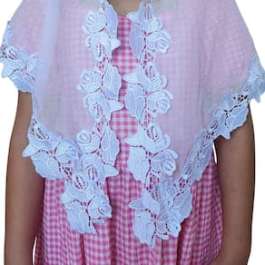 Confeccionado com Filó Verona (75% algodão e 25% poliéster) e Renda Guipir (100% poliéster).
