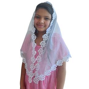 Confeccionado com Filó Verona (75% algodão e 25% poliéster) e Renda Guipir (100% poliéster).