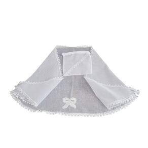 Confeccionado com Filó Verona (75% algodão e 25% poliéster) e Renda Guipir (100% poliéster).